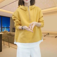 假兩件連帽衛衣 半拉鍊設計時尚超有範 柔軟親膚的面料 上身舒適自在 顯瘦不挑身材 休閒款式百搭各種場合