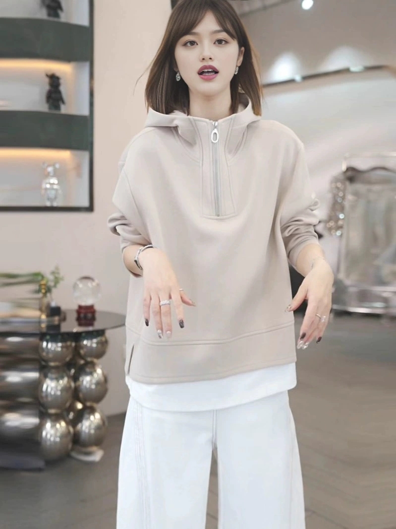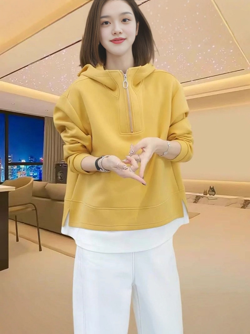 假兩件連帽衛衣 半拉鍊設計時尚超有範 柔軟親膚的面料 上身舒適自在 顯瘦不挑身材 休閒款式百搭各種場合
