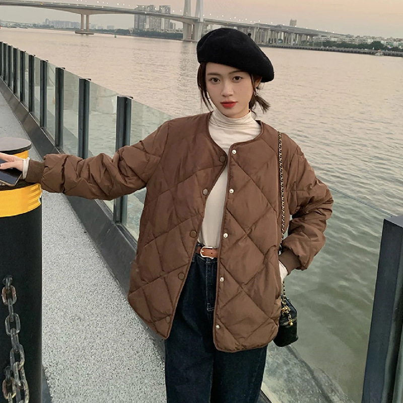 秋冬穿搭必備 韓版無領棉衣 簡約設計有格調 寬鬆版型顯瘦不臃腫 無領更顯利落 保暖又時尚